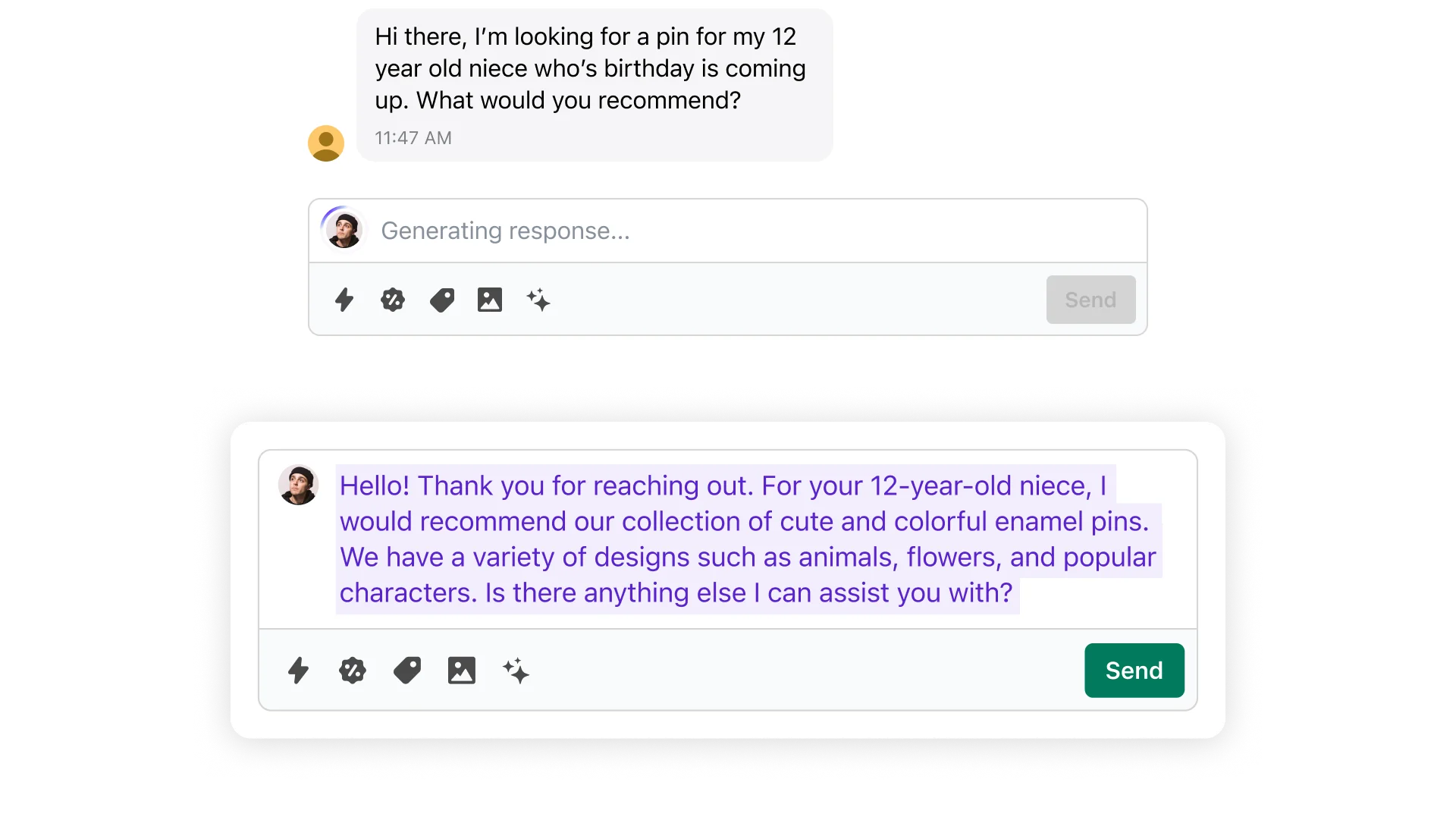 Dynamic pricing: "You haven't sold Y product in a while. I recommend running a Z% discount, what do you think?"