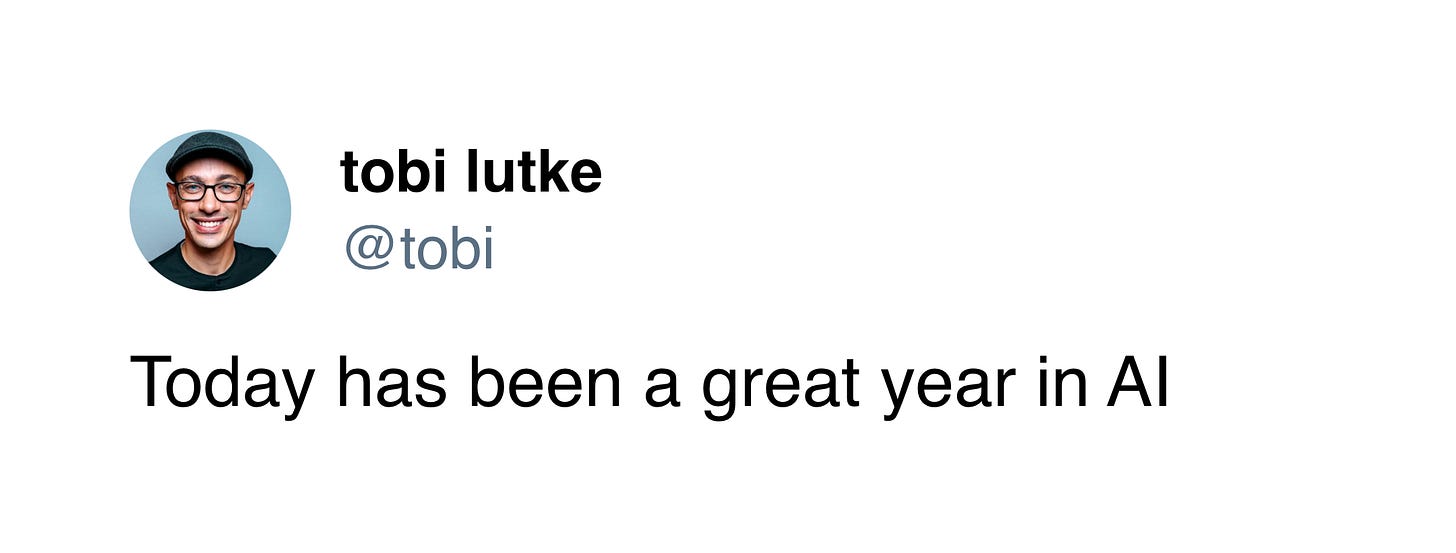 From the outside, there are a couple of reasons why Shopify takes AI so seriously. The first is the founder and CEO, Tobi Lutke. Lutke is a technologist at heart - he built the first version of Shopify himself with Ruby on Rails, and he's admitted to hacking on side projects in his spare time. A quick glance at Lutke's Twitter feed2 shows that he's deeply engaged with AI right now - and this clearly informs Shopify's priorities as well. Shopify Editions, the company's semi-annual feature launch, had an entire section dedicated to AI.