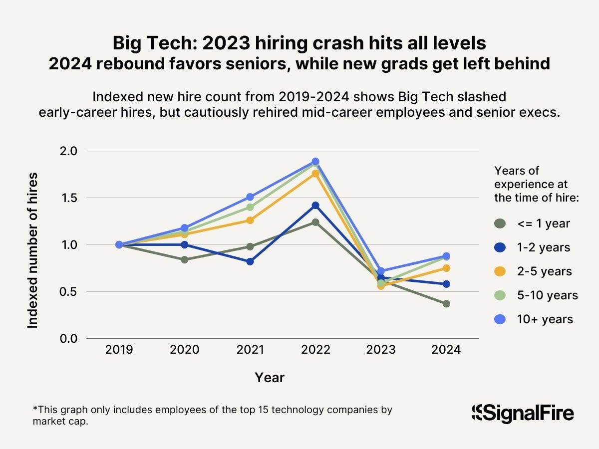 For what it’s worth, I don’t heavily buy into the idea that AI is entirely to blame for the white collar layoffs we’ve seen in recent years. I think tech companies overhired during the pandemic and have been shedding jobs, while leaning more into efficiency as interest rates have remained high. However, signs are increasingly pointing to AI having an impact on the job market for early-career professionals - i.e., juniors.