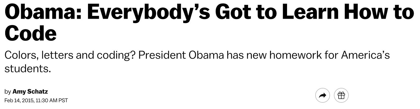 It’s a great question, and yet, one that would have seemed almost absurd to ask just five years ago. For nearly all of the 2010s, the answer was simple: yes, obviously. “Learn to code” became a cliché for a reason - thousands upon thousands of students saw computer science as a golden ticket1.