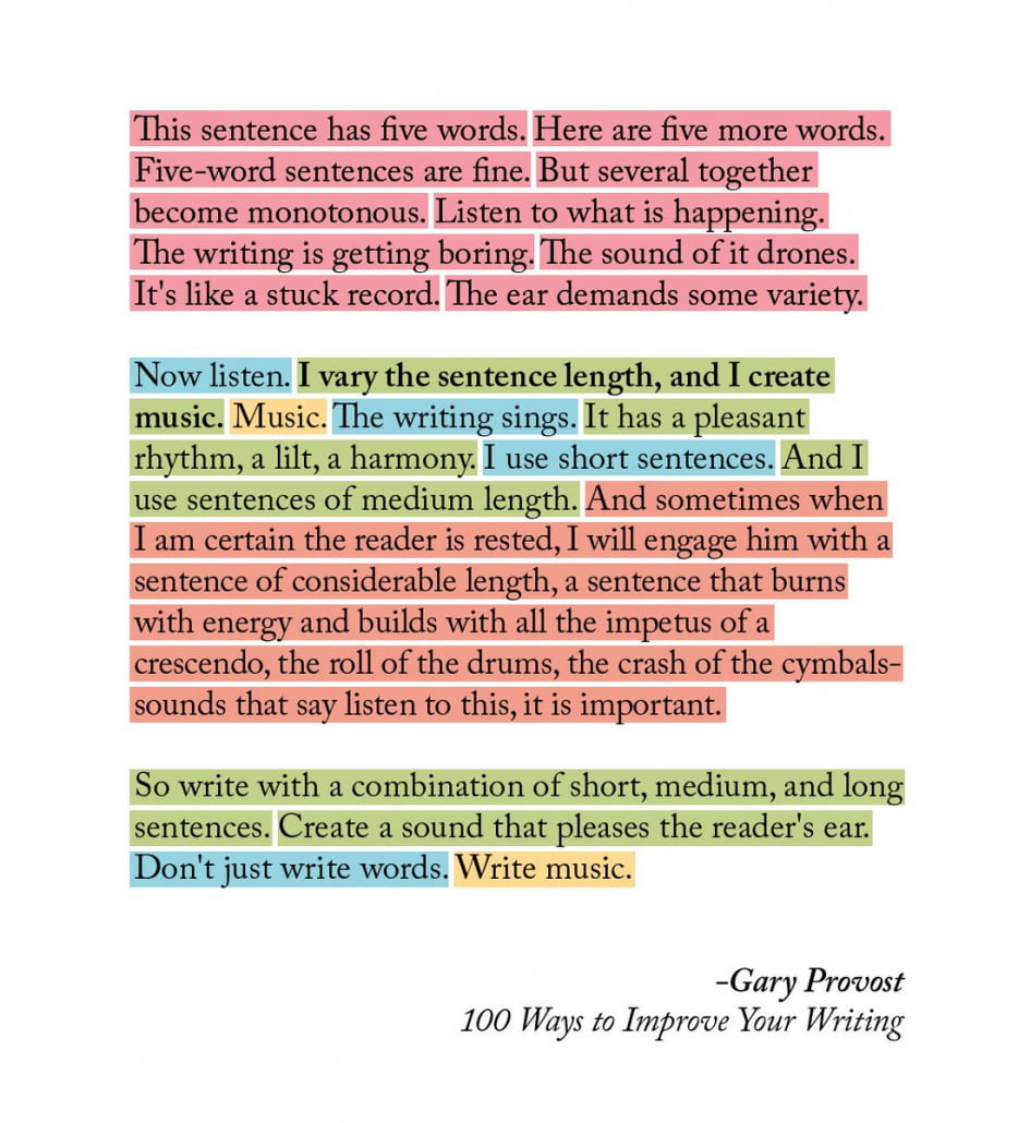 It stands in contrast to one of the great quotes about writing, from Gary Provost: