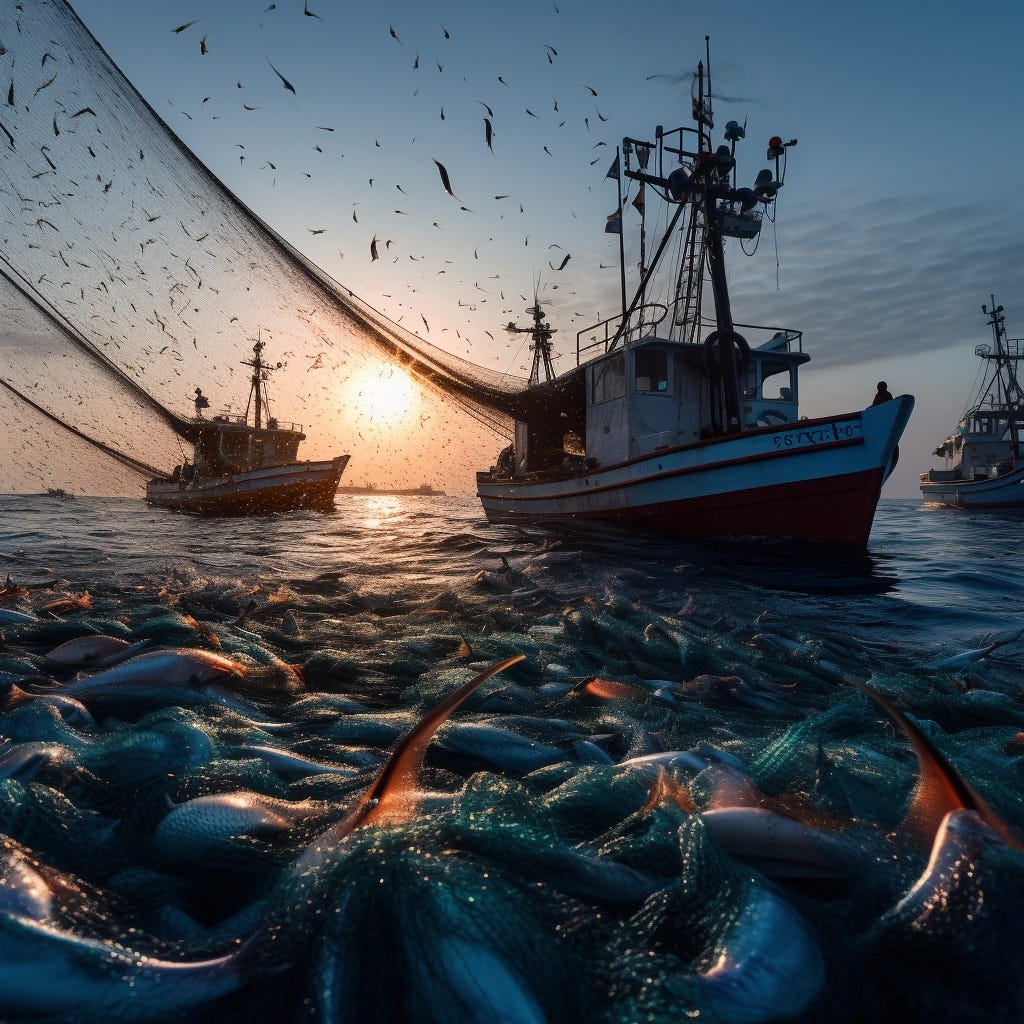 A more industrial example: overfishing. When fishing with a rod, there’s a limit to the ecological impact that any single person or group can have. But with industrial fishing, massive trawlers and dragnets have threatened species with extinction and fundamentally altered marine ecosystems. As it becomes increasingly challenging for users to find genuine, original content amidst a sea of AI-generated articles, blogs, and images, we risk driving authentic online content extinct.