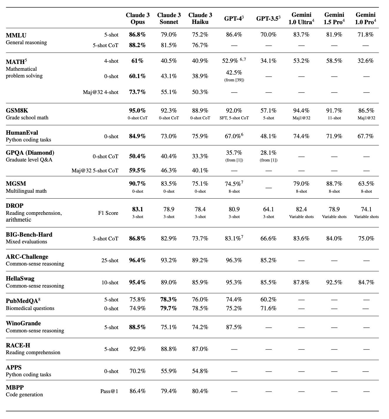 Claude 3's benchmarks